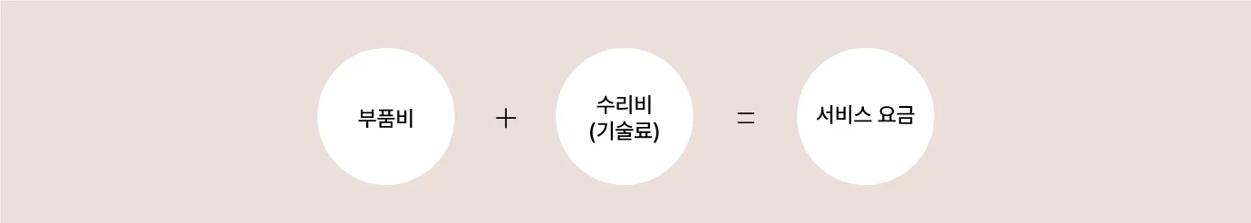 서비스 요금은 정부에서 제정한 소비자 기본법을 기준으로 소정의 요금을 청구하고 있습니다. 서비스 요금은 부품비, 수리비의 합계액으로 구성되며 각 요금의 결정은 다음과 같습니다.